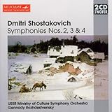 La 4° symphonie de Chostakovitch telle que nous l’entendons aujourd’hui est une "reconstitution" effectuee d’après les parties et une transcription pour deux pianos publiee en 1962: le materiel d’orchestre original a en effet ete perdu pendant le siège de Leningrad . Il n’est pas possible de determiner quels inflechissements l’oeuvre a pu subir à la suite de la condamnation de janvier 1936 par l’Union des Compositeurs de l’Union des republiques socialistes sovietiques, ainsi que des repetitions de decembre 1936 avec l’orchestre de Leningrad destinees à preparer la creation de l’oeuvre qui n’intervint en URSS que vingt cinq ans plus tard. Qu’importe cette symphonie n’en reste pas moins extraordinaire, unique dans l’oeuvre pourtant abondante et variee de Chostakovitch. C’est le seul temoignage que l’on possède sur l’orientation que son art aurait pu prendre s’il avait continue à composer dans un contexte de liberte. Il s’agit d’une oeuvre enorme, demesuree, sans programme, sans texte, sans titre et même sans dedicace. Elle personnifie sans l’exprimer bien sûr par des mots , mais le Regime sovietique qui l’a interdite en son temps ne s’y est pas trompe, l’etat de chaos et de totale absurdite auquel avait mene depuis vingt ans la politique sectaire, incoherente et malfaisante du couple Lenine-Staline, et ce n’etait pas fini. On est ici au-delà du neant et de la comprehension humaine : à chaque mesure, s’entend l’esprit de negation, de destruction . L’esprit du mal est ici omnipresent . Il a capte tout ce qu’il y a de bon en chaque individu afin de le reduire en poussière, de le desintegrer pour le remplacer par des declarations stupides , c’est à dire par rien. La lecture du maestro Rosdestvensky est hallucinante . Une vision d’apocalypse qui vous donne le vertige. Après ceci, il ne reste pas grand chose à dire des symphonies # 2 et 3...
